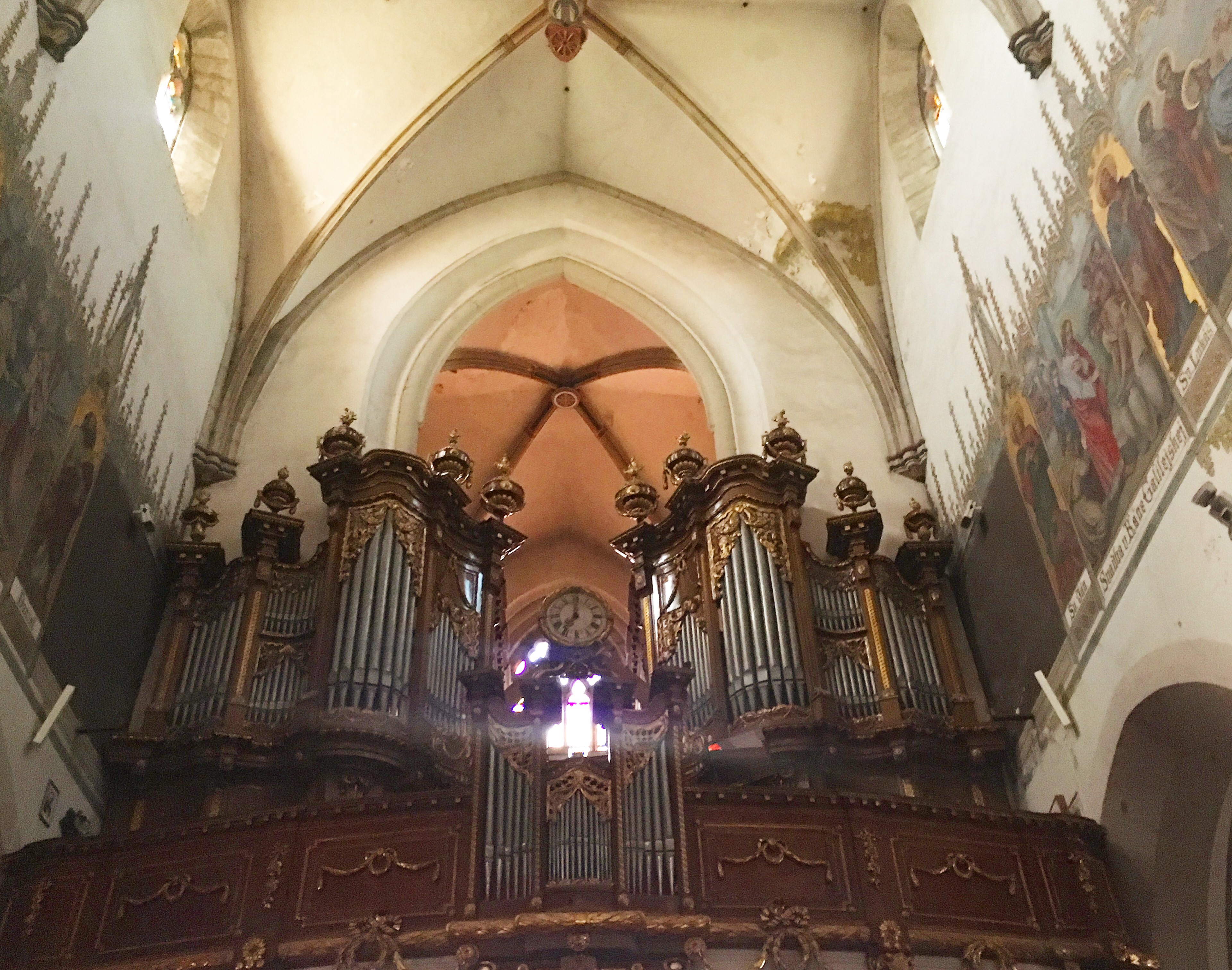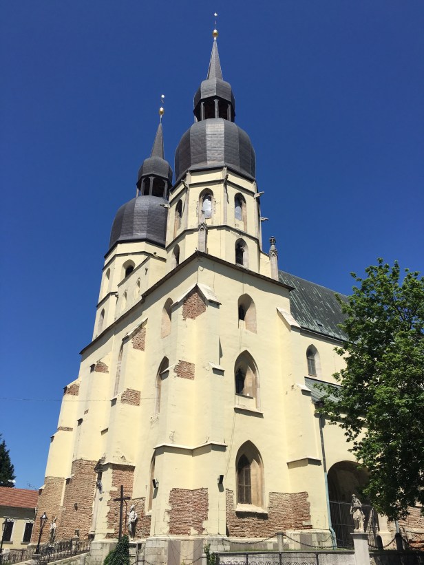 Above is St. Nicolas church, one of the oldest churches in Trnava, built in the late gothic style in 1380 and finished in the middle of the 15th century.