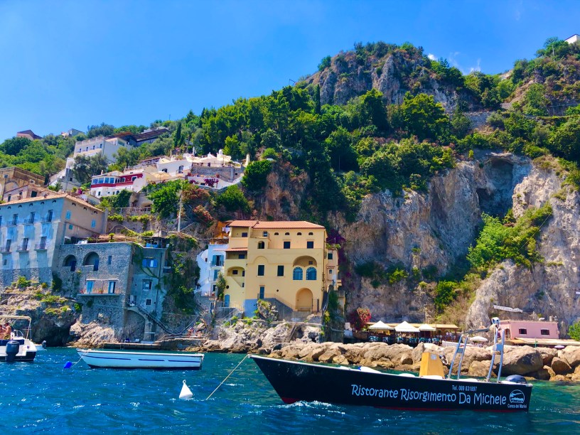For a short break from swimming, we caught a ride on a speedboat for a look inside the famous Grotto dello Smeraldo, the Emerald Grotto. Named for the colors filtering in from an underground opening, the day we visited the grotto was more luminous turquoise than emerald; lovely nonetheless. Additionally, the cavern is filled with stalagmites and stalactites, appealing a lot to my kids. The tour is short, about 15 minutes, but the boat ride was thrilling and we all enjoyed seeing the cave immensely.
