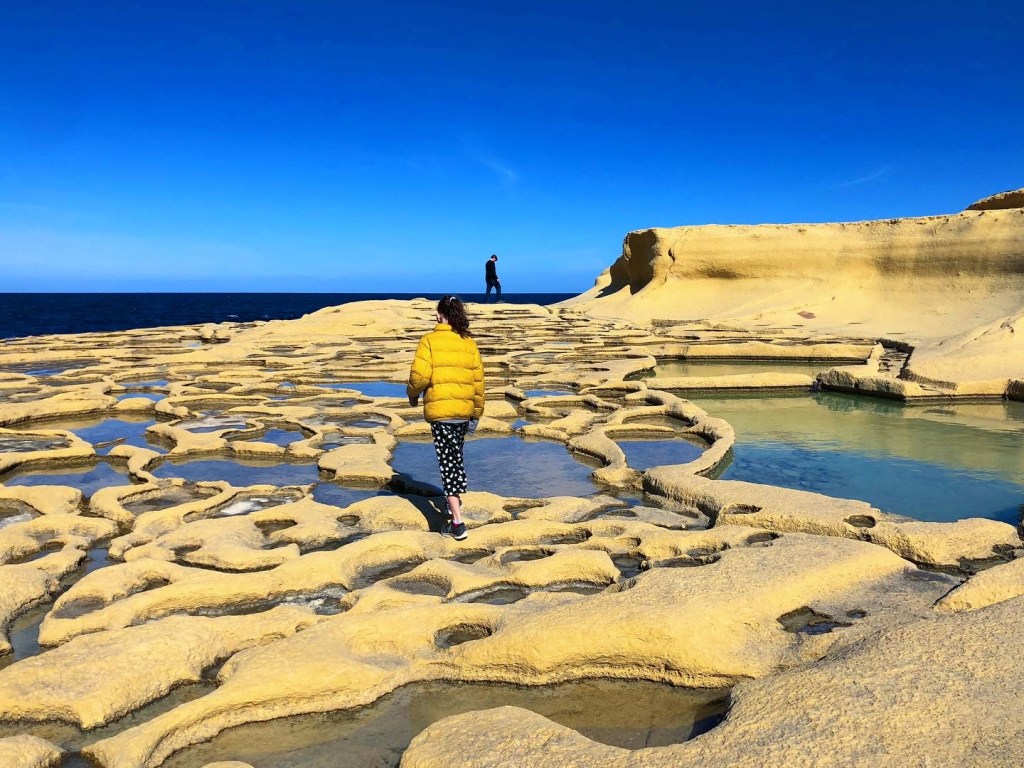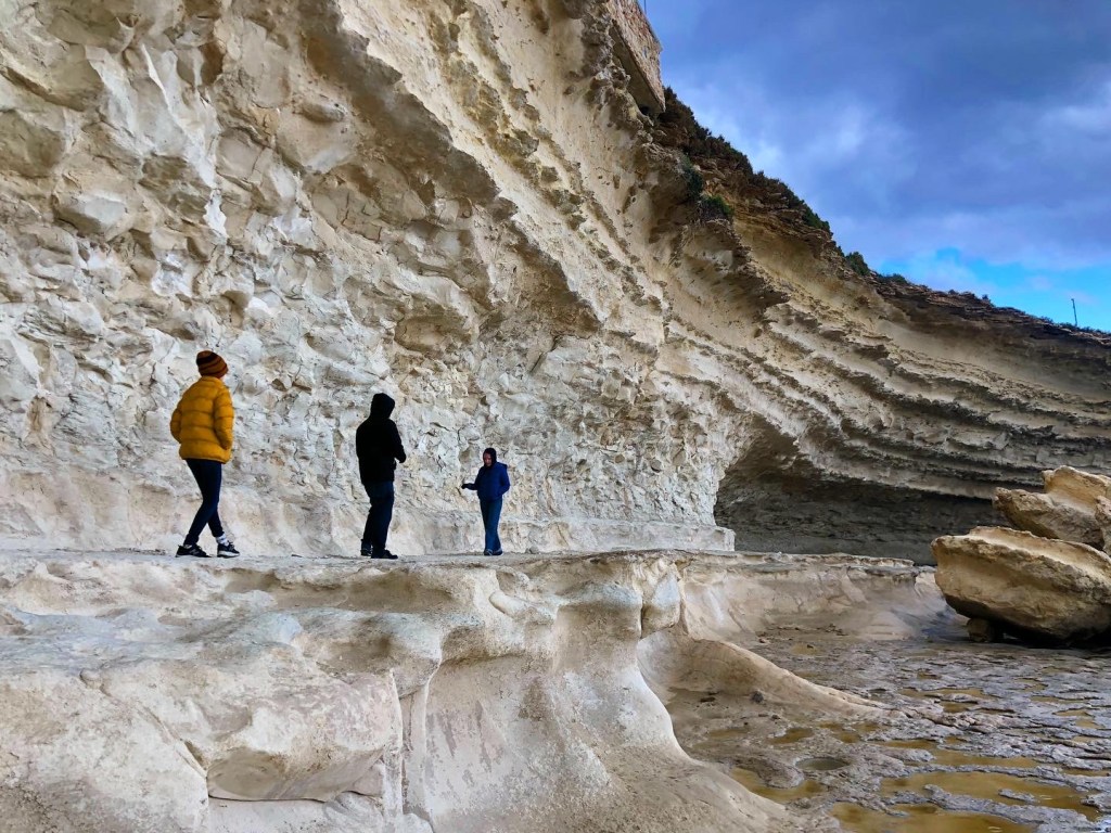 Marsaxlokk is famous as a spot for the freshest seafood and a laid back atmosphere. Nearby St. Peter’s Pool is a dream for sunbathers and swimmers (but it was a bit chilly for swimming in February), and a short distance away at Xrobb Il-Ghagin you can find incredible views along the eroding cliffs dappled in wildflowers.