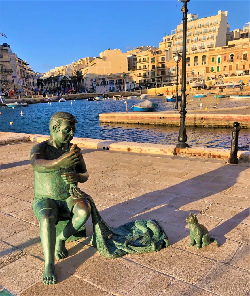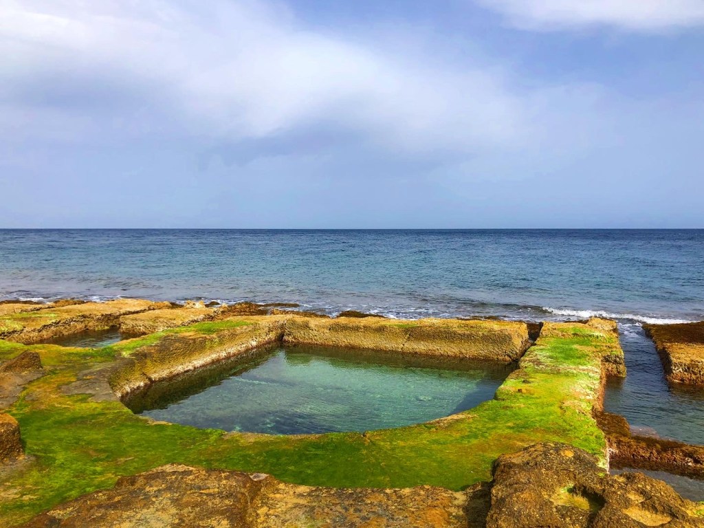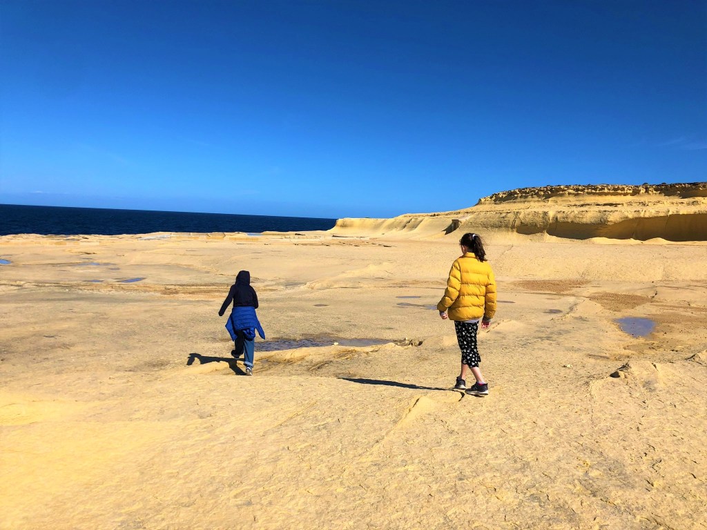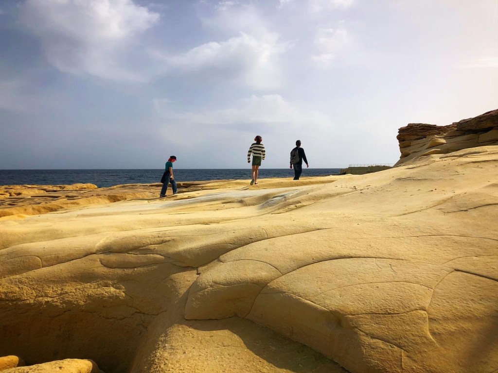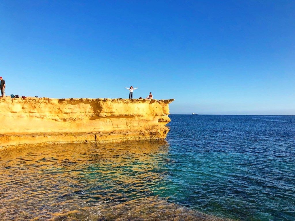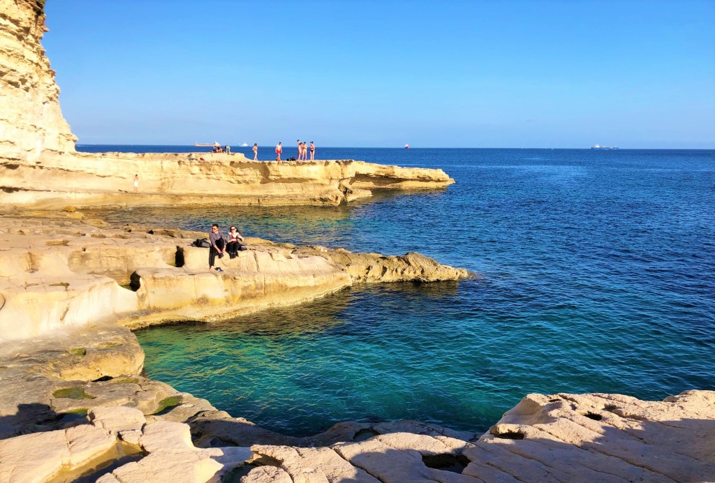 The cliffs and coast from St. Julian’s to Sliema are an adventure in their own right and this trek became a favorite for us. We pointed out all the fish we saw in the aquamarine water, discovered sooo many fossils in the golden limestone, and just generally climbed around. Along the cliffside in Sliema you’ll come across ancient Roman baths carved directly into the limestone, with the sea water filling them up like pools.