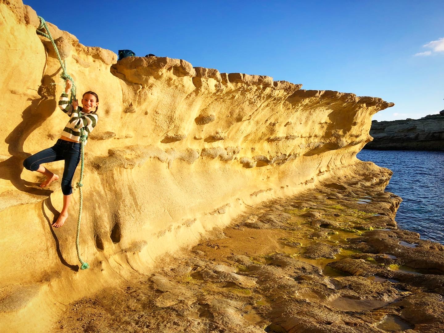The cliffs and coast from St. Julian’s to Sliema are an adventure in their own right and this trek became a favorite for us. We pointed out all the fish we saw in the aquamarine water, discovered sooo many fossils in the golden limestone, and just generally climbed around. Along the cliffside in Sliema you’ll come across ancient Roman baths carved directly into the limestone, with the sea water filling them up like pools.
