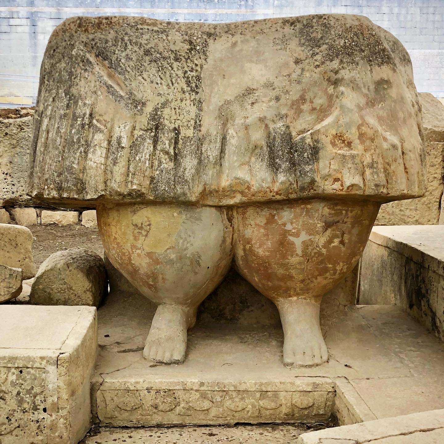 Tarxien Temples: My personal favorite of the sites visited, Tarxien is pretty big and full of interesting finds, including pottery jars, decorative carvings, and the fantastic half statue of the lady below.