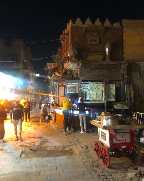 During our visit to in the old town we had the opportunity to walk inside one old mosque, Mosque Sabil Kuttab Aly El-Mutahhir, with bats flying around and really spectacular decoration everywhere. There are many mosques in the area, and the nightlife was humming around them. I saw the Mosque Qalawun, Al-Azhar, and Al-Hussein, amongst others, but only from the outside because it was late and they were not open to visitors.