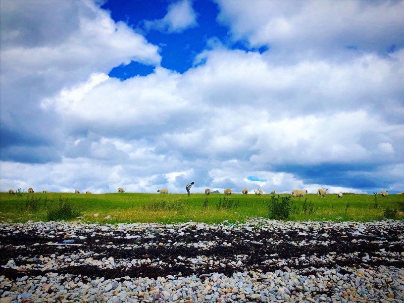 Exploring the Braes and around, we found telephone booths converted to free libraries, desolate beaches except for the sheep and some cool old ceramic treasures, and green as far as our eyes could see.