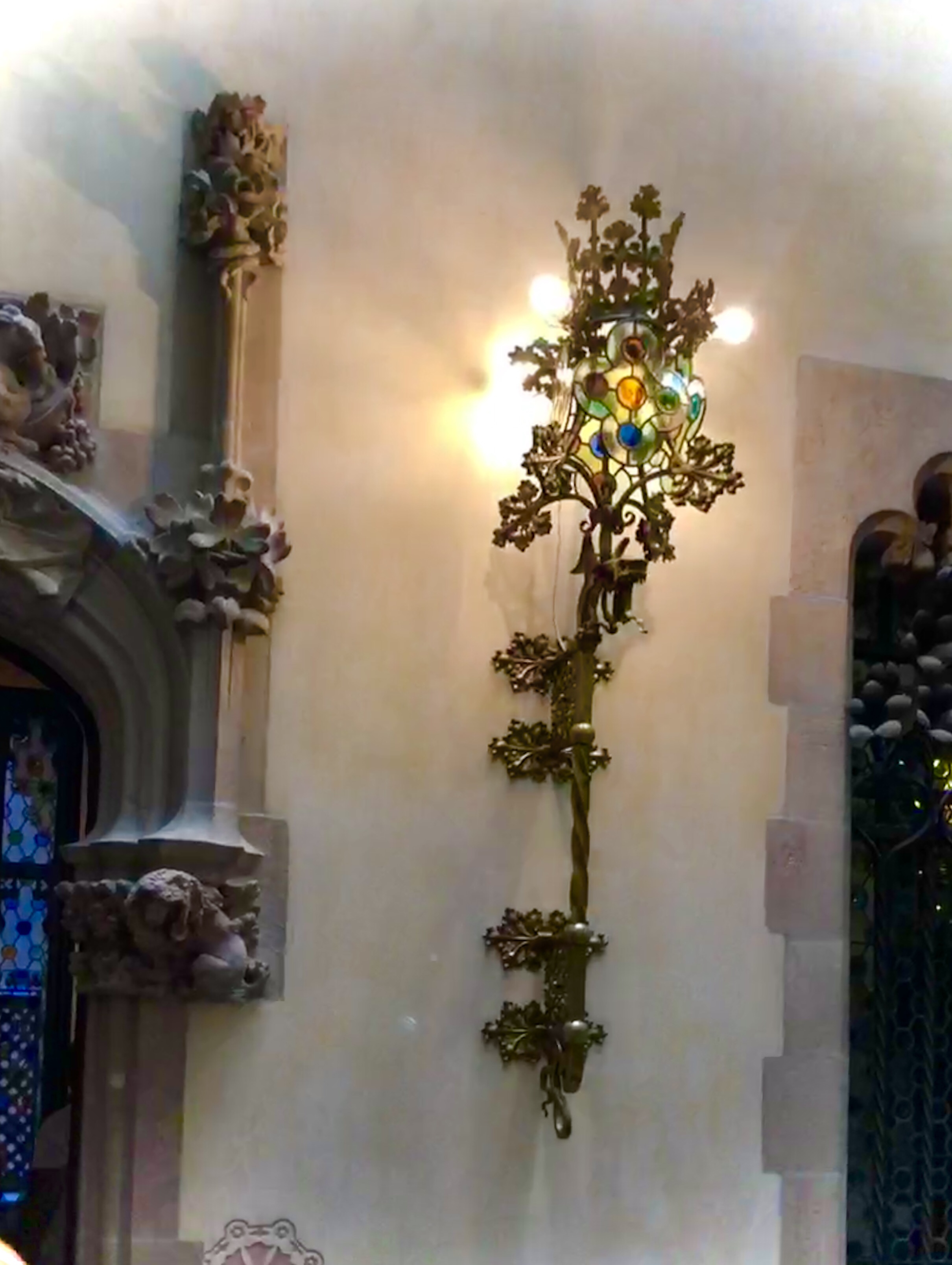 Casa Amatller is another striking example of Catalan modernism, this time by architect Puig i Cadafalch. A decidedly different, but I would argue complementary, style from Antoni Gaudí (and Casa Batlló is right next door), Cadafalch was a follower of the Renaixença, a cultural movement committed to recognizing and valuing Catalan culture and nationalism. Renaixença can still be seen in Casa Amatller, but formerly frescoes including the Catalan anthem and a traditional Catalan song were hidden, likely due to fear of reprisals at the start of the Franco dictatorship.