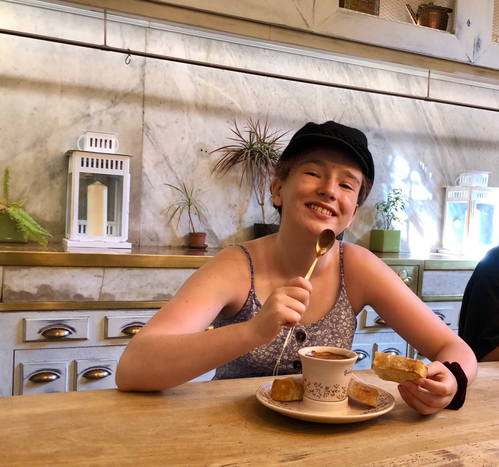 One of the best parts of touring Casa Amatller is that this has been, for centuries, a home to chocolatiers. Which means warm and creamy drinking chocolate to conclude our visit. There’s also gorgeously packaged chocolate that can be purchased, and I wish we could have bought some, but the super hot weather meant it all would have been melted within minutes outside.