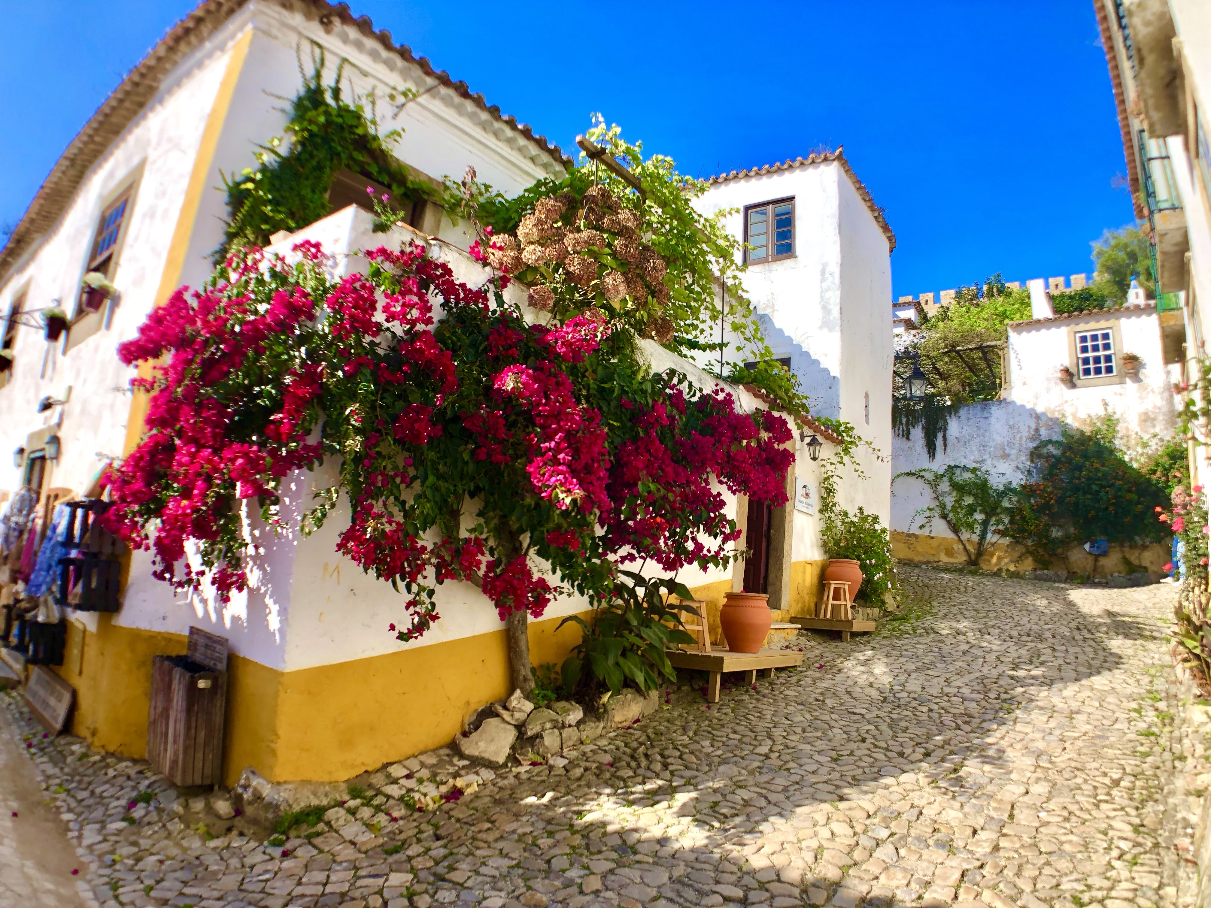 The first stop on our drive, the walled town of Óbidos is a medieval dream come true. Towering at the end of the walled city, the castle, Castelo de Óbidos, is the heart of this colorful town.