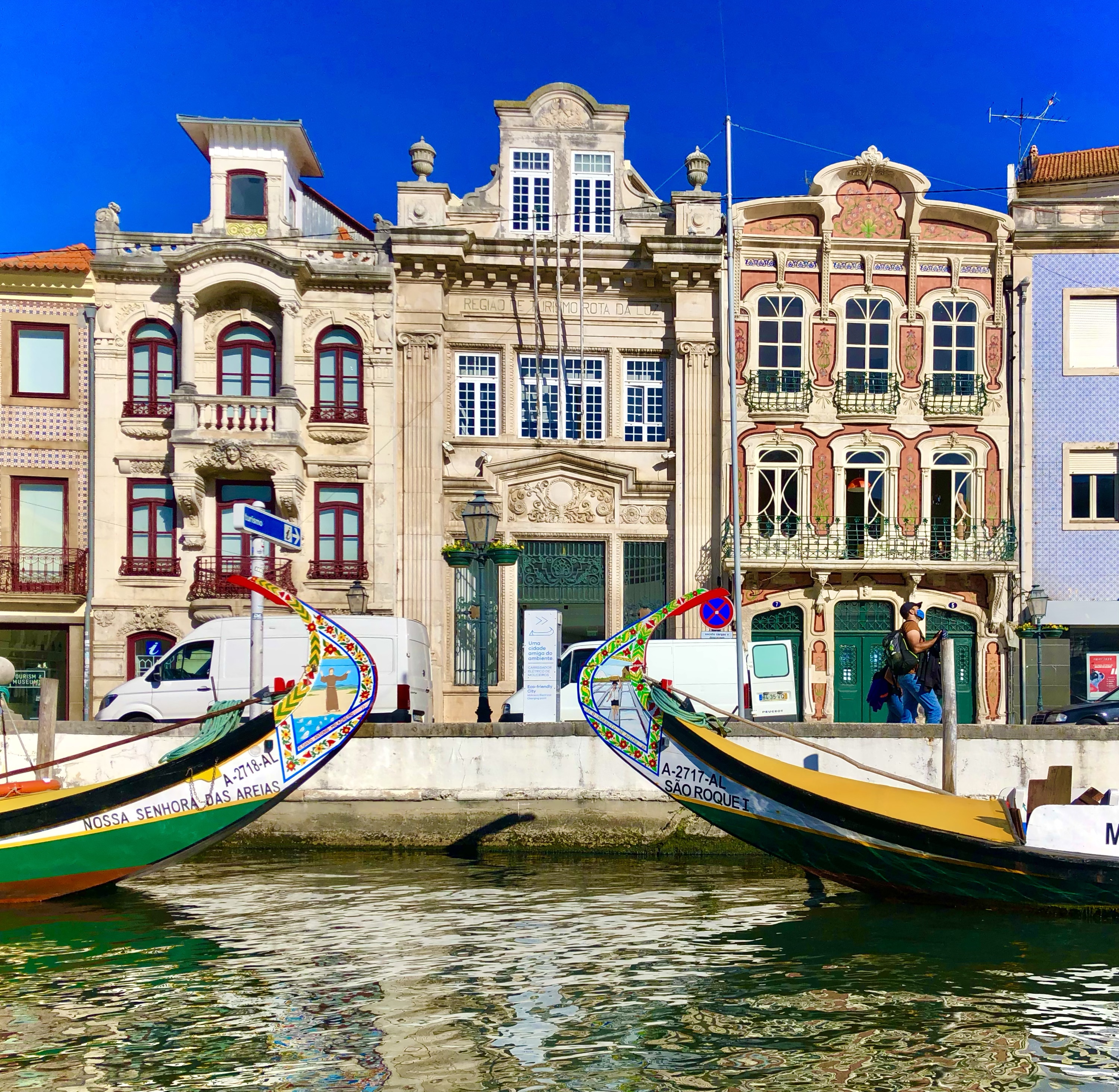 Since the middle ages, Aveiro has been vital in sea trading and salt and seaweed harvesting. It has an extensive canal system, and is most famous for its painted boats, the barcos moliceiros. These boats were used to collect the seaweed, and now you can take a canal tour on them.