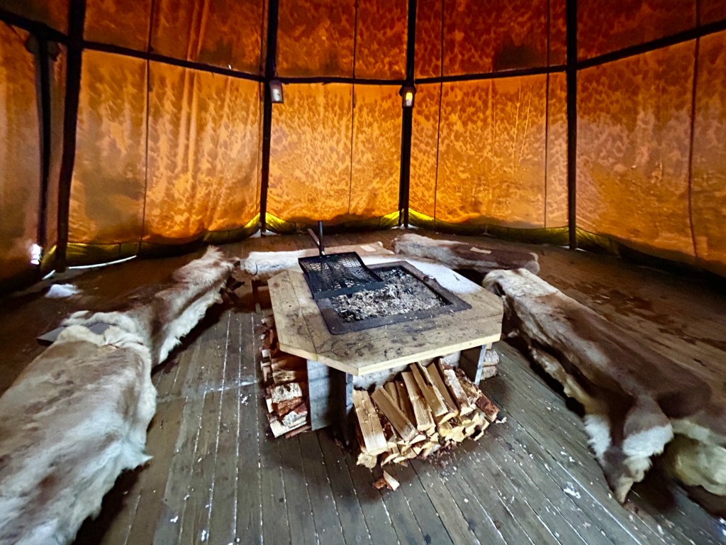 At Nutti Sámi Siida we fed and pet the reindeer, walked and learned through the open air museum, and had a warm and delicious lunch by an open fire in a tent. You can also book excursions, including reindeer sleigh rides, dog sled rides, and Sámi cultural experiences.