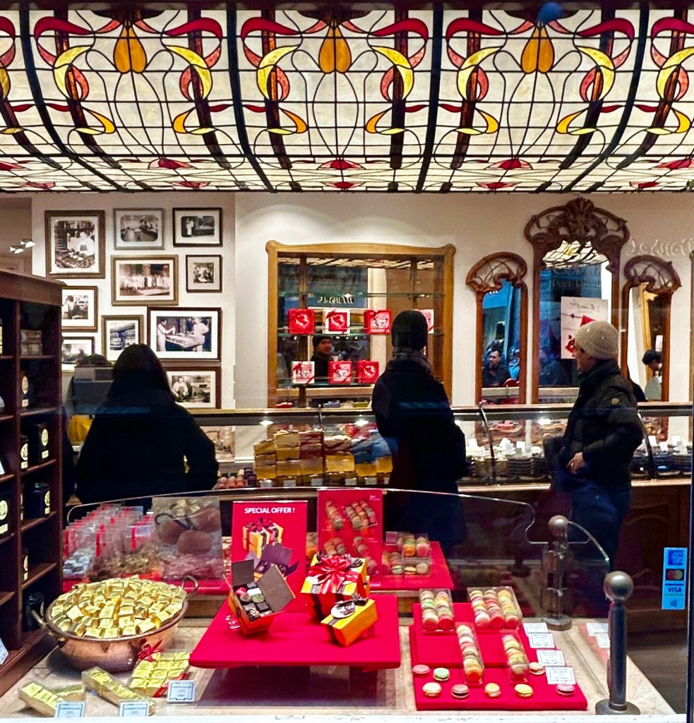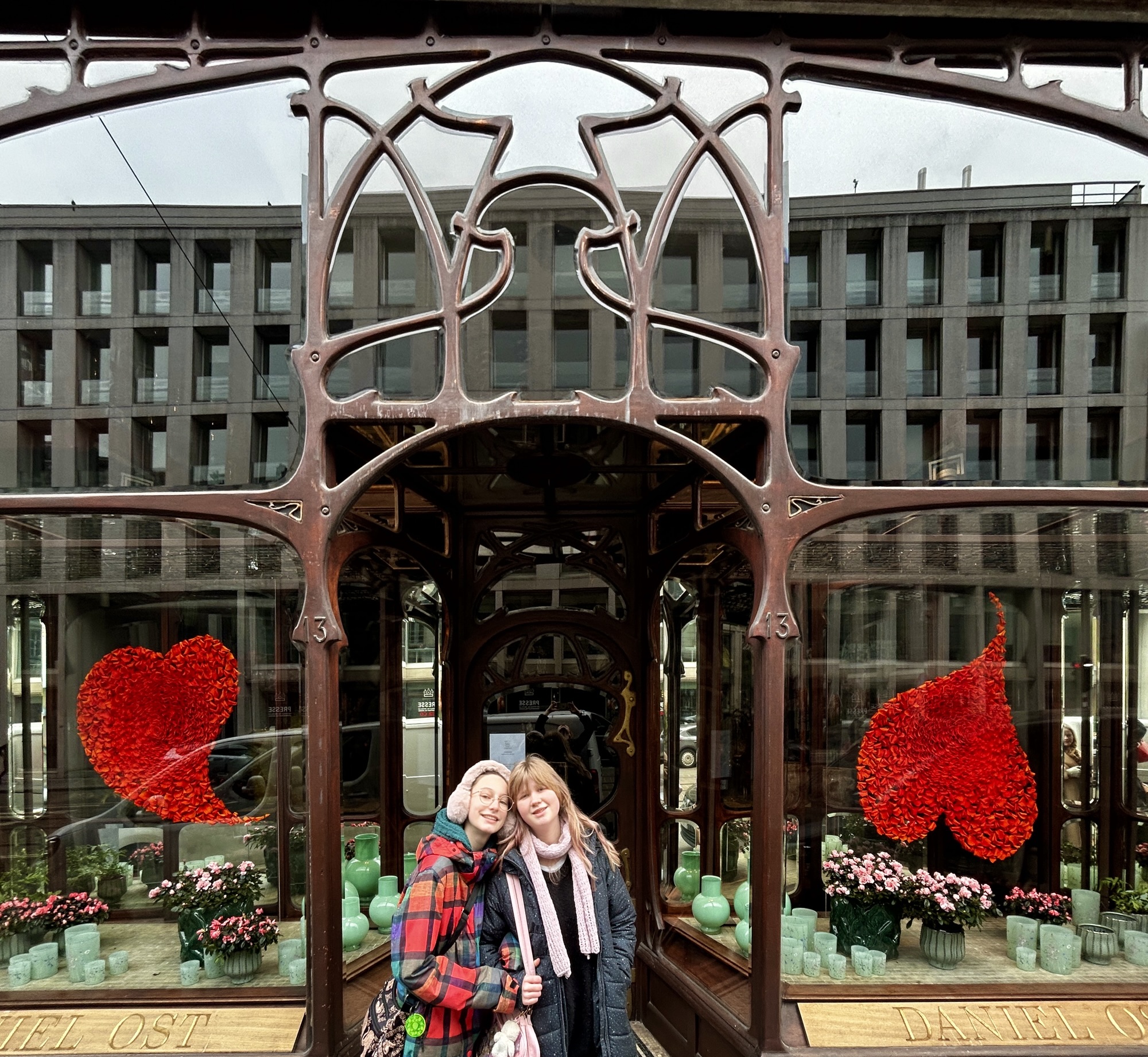 Walking around Rue Royale and the Galeries shopping area, there are quite a few lovely art nouveau storefronts, so I and my adorable models posed in front of a few.