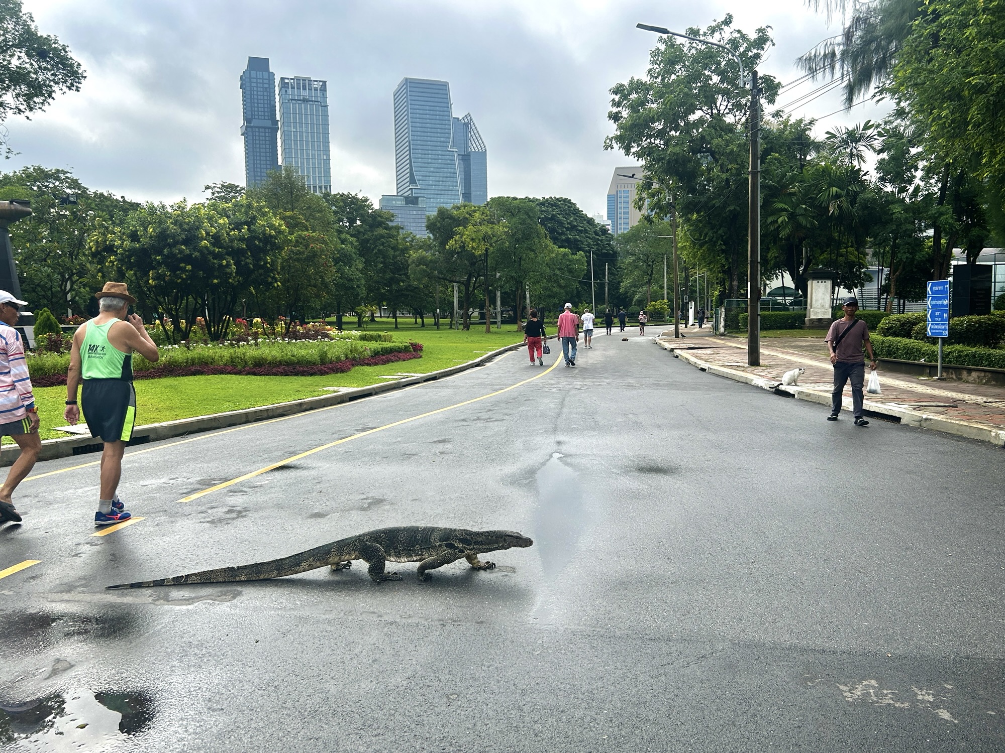 I was staying in the Sathon area, right across the street from Lumphini Park, a spot I have run at every time I’ve been in Bangkok. What’s unique is that it is home to a lot of water monitors, aka the Bangkok Dragon. These guys get big, and its so interesting to see them wandering around and swimming at the park.
