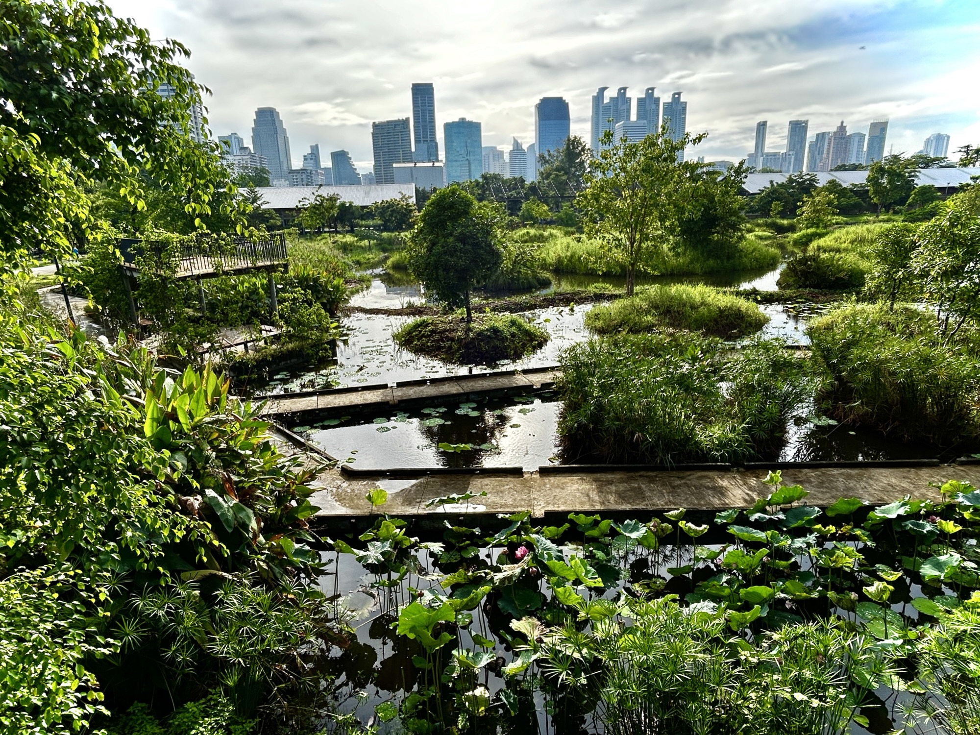 Benchakitti Park is large and has a sky walk, where you can view the city and the wetland area from above. The park was built on the location of an old tobacco factory. The concept of the park is bringing the forest into the city and supporting urban biodiversity with constructed wetlands, nature learning and exercise trails. Its beautiful here, nicer than Lumphini, but without any dragons, as far as I could tell.