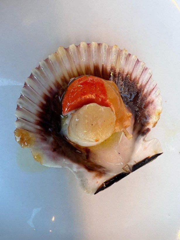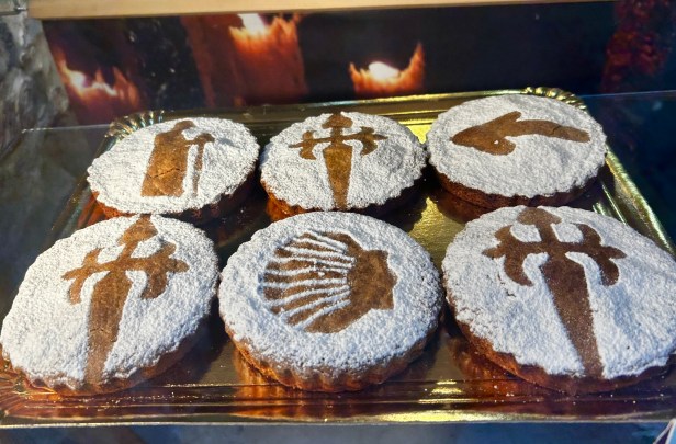 Some other fun foods – we tried barnacles, which look like little dinosaur feet, we ordered red wine at a restaurant and got a crema de licor bottle filled with the village’s locally produced red, we tried the traditional pilgrim cake, “tarta de Santiago”, and ate endlessly delicious and fresh seafood, including scallops I think I still fantasize about.