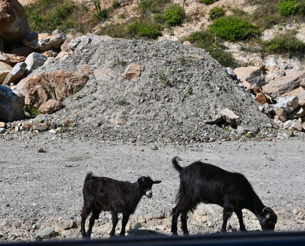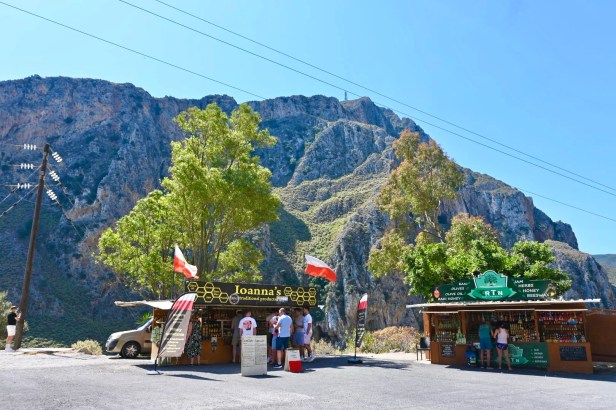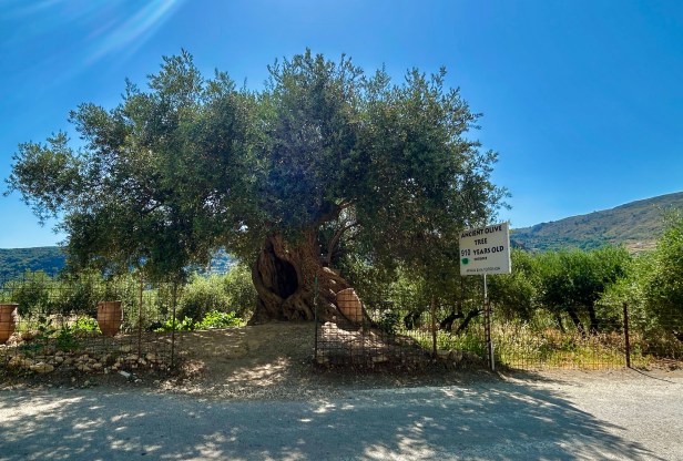 The drive from Agia Marina to Elafonissi Beach is over an hour, but luckily its also a really varied landscape, so there’s a lot to look at. Goats everywhere, views of the gorges as you drive, and little viewing and rest areas selling local honey, olive oil, whatever you might want. There’s also an apparently famous olive tree, the Ancient Olive Tree of Vouves, the oldest recorded olive tree in the world, proclaimed as a natural monument. Its age is estimated between 3000 and 5000 years.