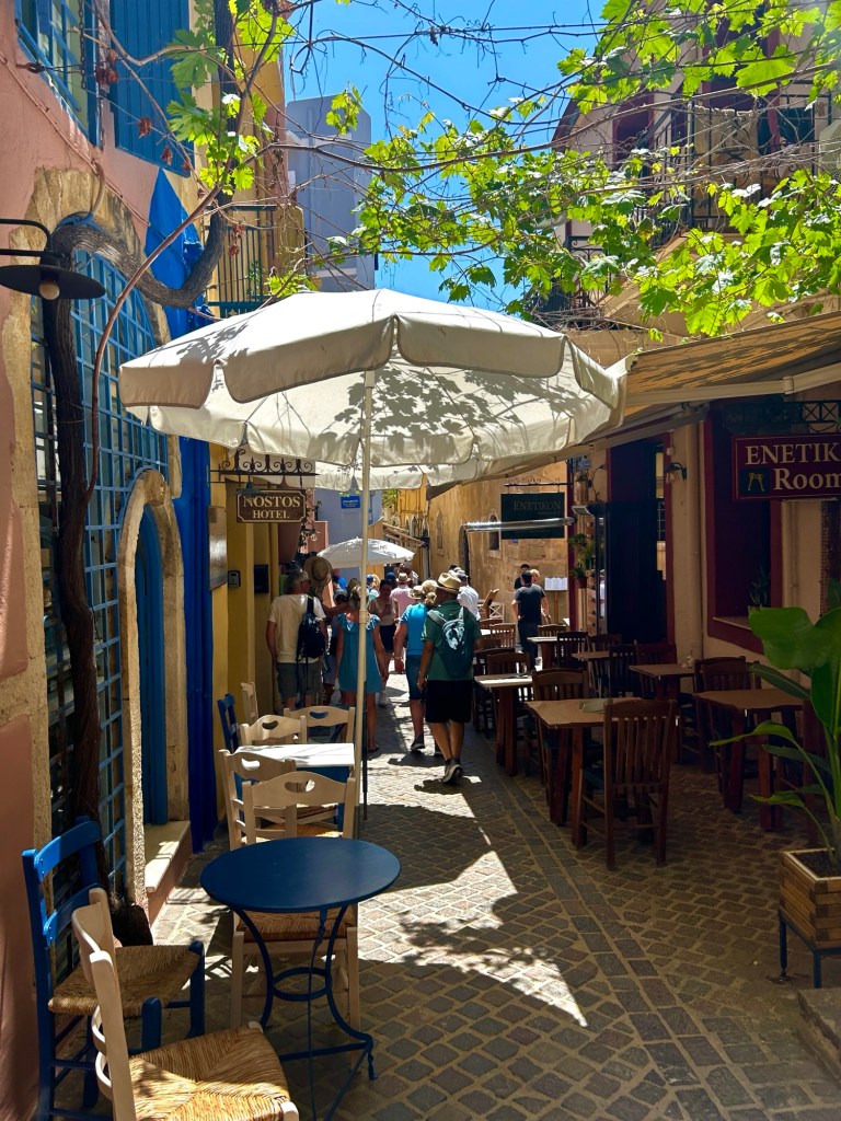 Wandering through the winding streets of Chania is scenic and enchanting. But also hot, so a cool drink or some ice cream is highly recommended. We made sure to bring some cat treats, which was greatly appreciated by our four-legged acquaintances.