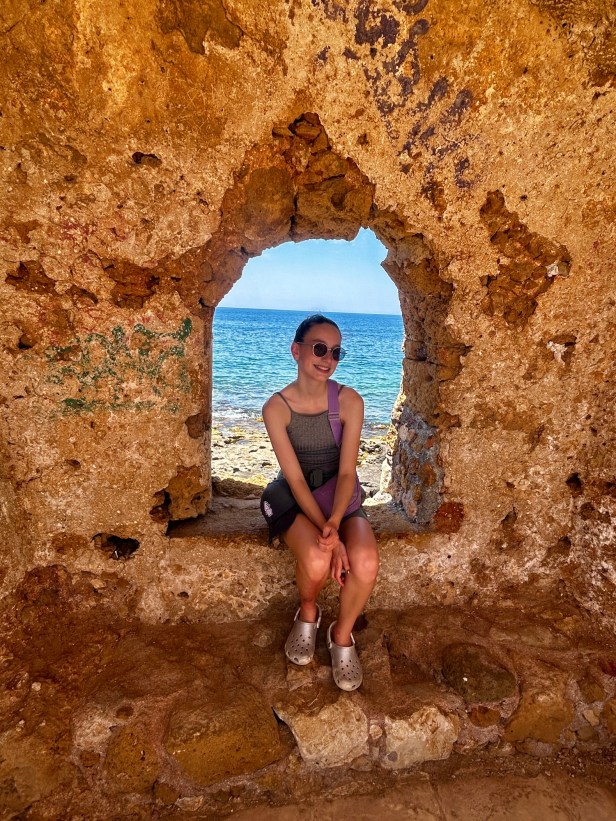 I had heard so much about Elafonissi Beach that we just had to check it out. And it really was stunning. Calm, turquoise waters, rocky outcrops, and pink swirly sand. It is definitely not hidden, there were lots of people, but it was so large that the beach didn’t feel crowded.