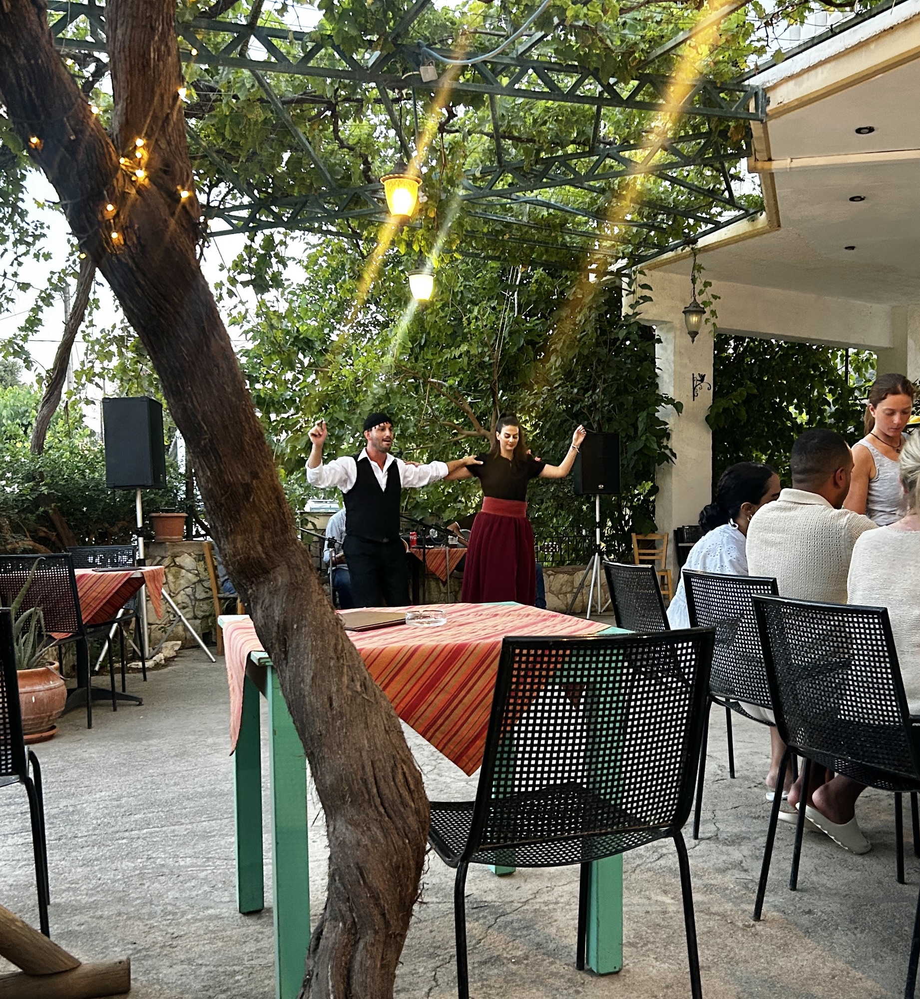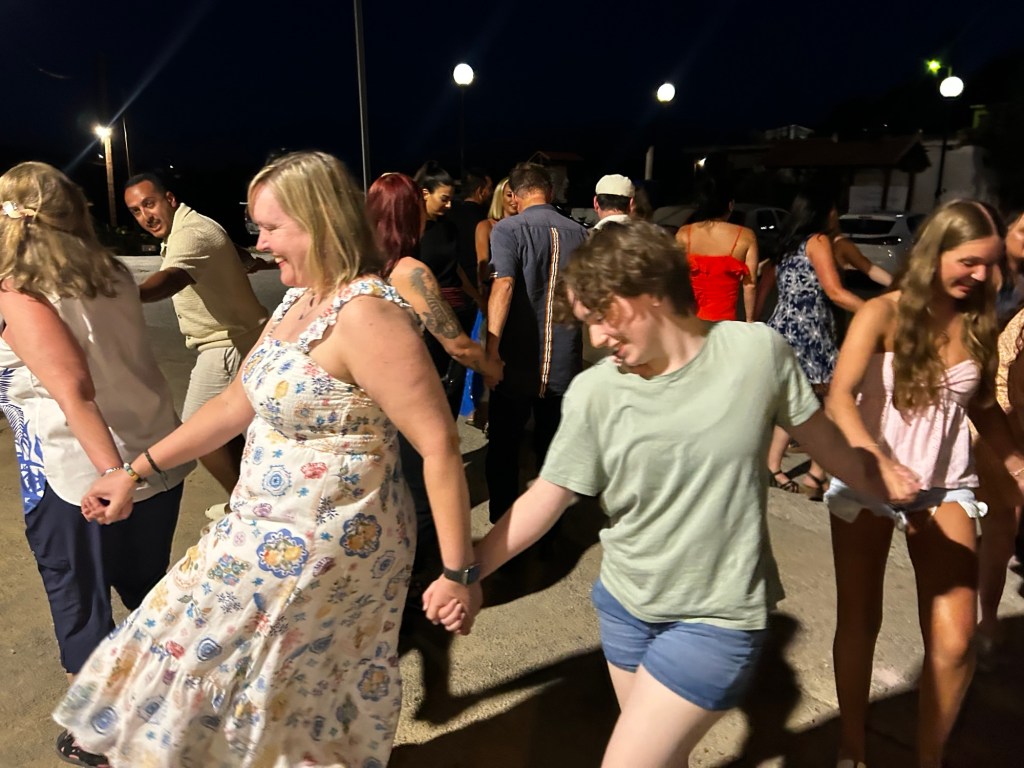 - Pinakoti: in the tiny village near our rental, we headed to this restaurant. And lucky us, there was dancing and music. What an experience