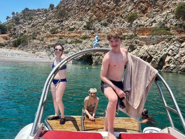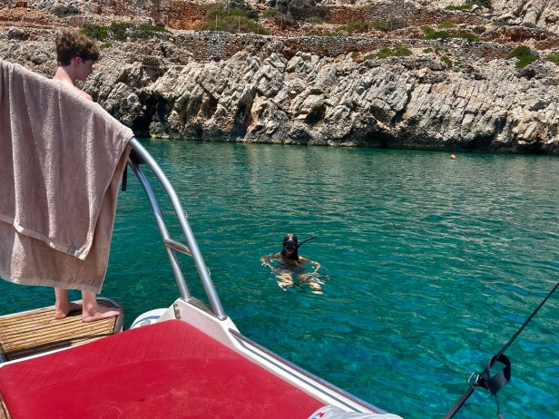 What a day! We rented with Seaze the Day boat rentals, and rode this gorgeous boat out of Chania, towards Menies Beach, into some caves, around a peninsula, to Gramousa Beach and also Balos Beach. We snorkeled, ate, relaxed, and applied copious sunscreen.