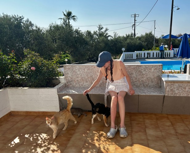 We also spent a few nights at the beginning and end of the trip closer to the airport, around Stavros. I know what you’re thinking, that near the airport cannot be very nice, but the area was so unspoiled and our rentals were wonderful, clean, and beautiful. Plus cats, which, for us, is always a big thumbs up.