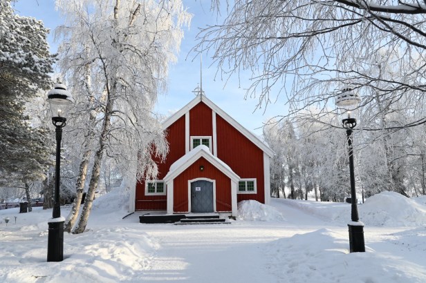 This historic church was built in 1608, and the decoration inside is inspired by the Sami culture. The wooden triptych just behind the altar depicts scenes from a local religious movement called Laestadianism, created by Lars Levi Læstadius.