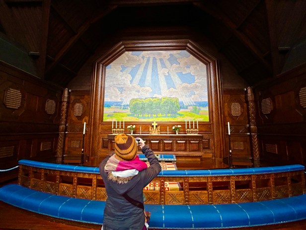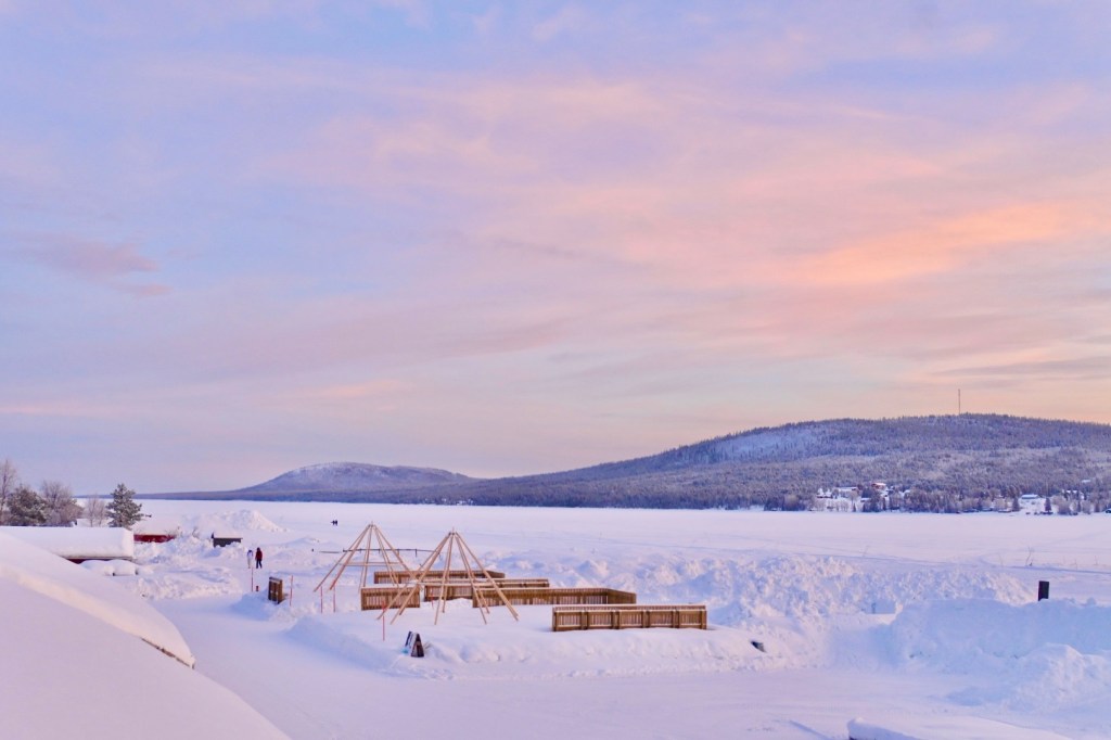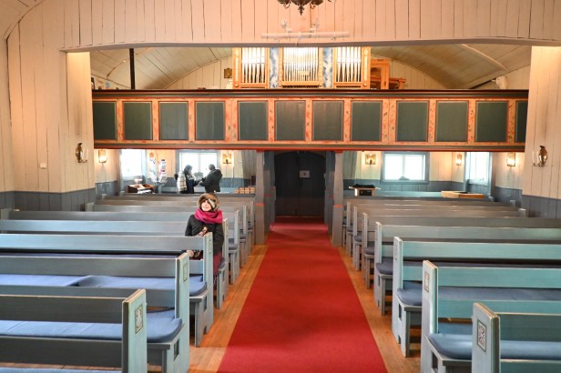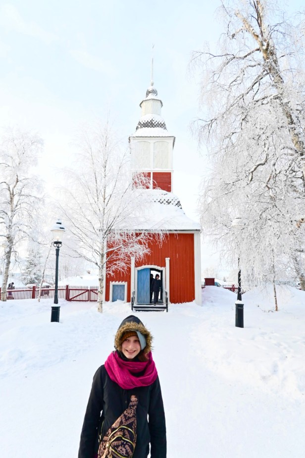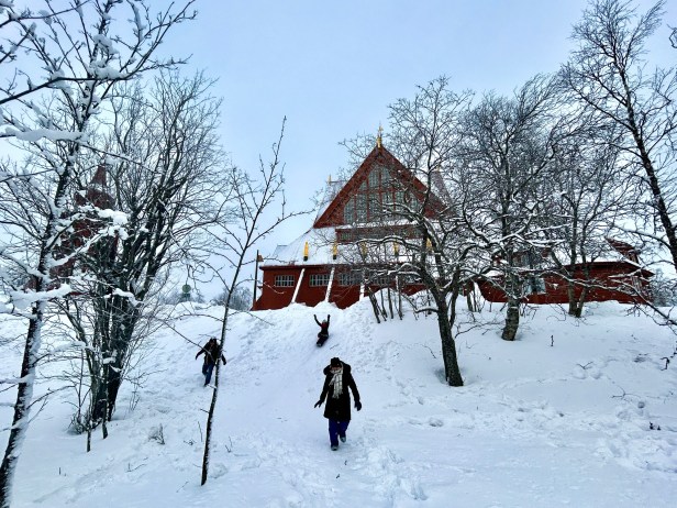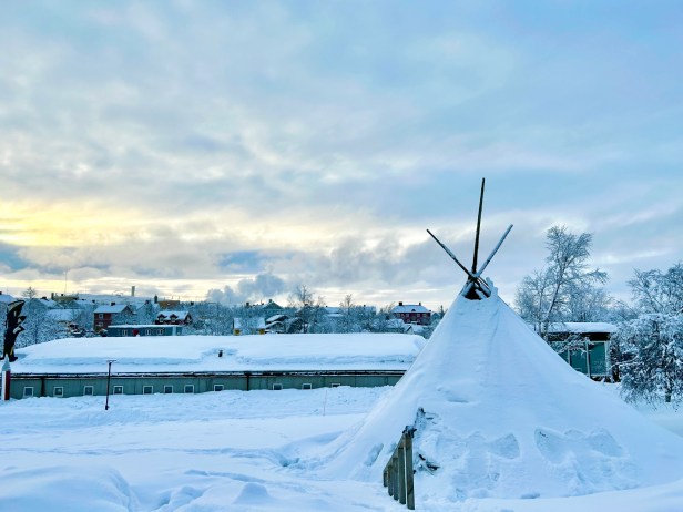 The city of Kiruna has a few interesting sites – namely the church. Its one of Sweden’s largest wooden buildings, built in the early 1900s, in a Gothic Revival style, with a very cool art nouveau altar. Otherwise we wandered around the town and played in the snow, but Jukkasjärvi was a lot more picturesque. We ate a very tasty lunch inside a teepee at Stejk Street Food.