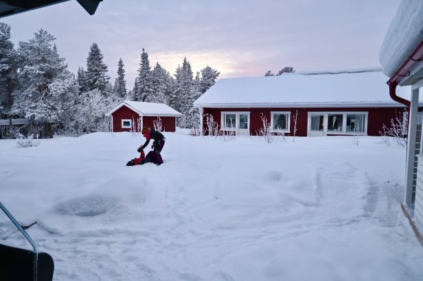 Our home base was a town called Jukkasjärvi, and it was wonderful – quiet and close to the ICEHOTEL, Jukkasjärvi Church, and the Sami Museum. We had the coziest rental, and watched the northern lights from our porch. Also, there was just so much snow, so deep, and it kept coming down.