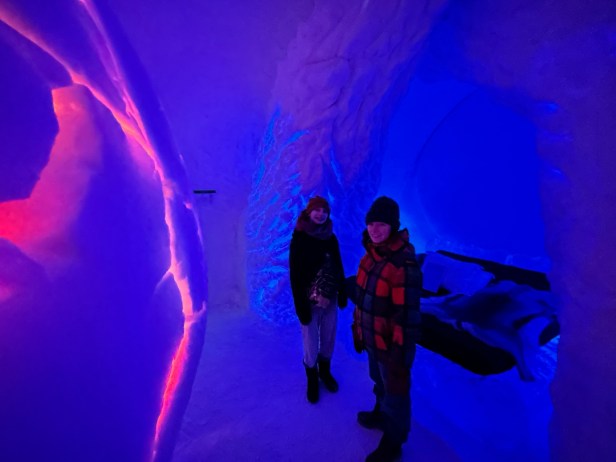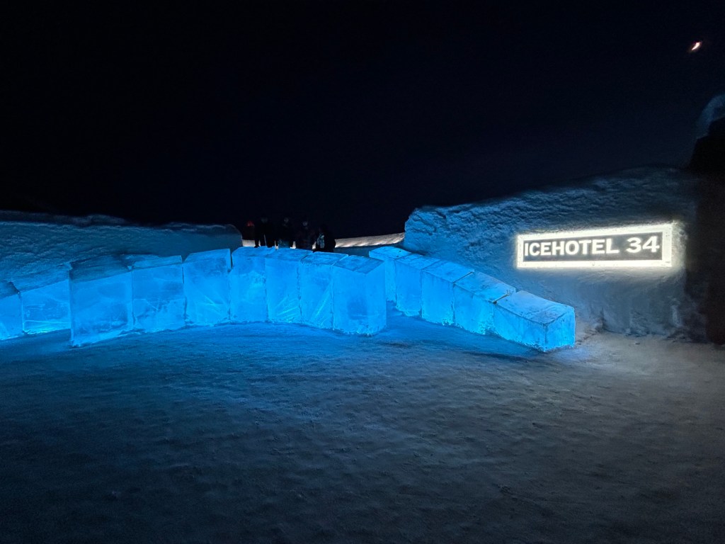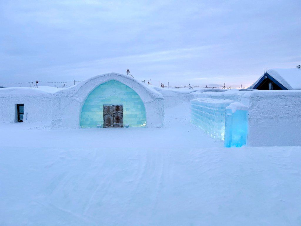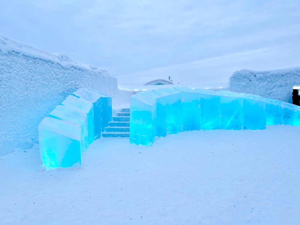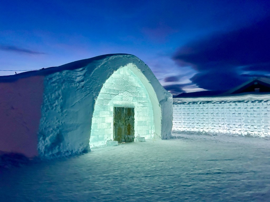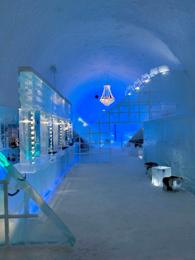 One of the coolest things to see in the Kiruna area is the ICEHOTEL, where they create an entire hotel and art gallery from ice. We did not sleep here, although you can – its very pricey. Spending our afternoon exploring all the rooms and then having fancy cocktails and drinks in a bar made entirely of ice was so incredible.
