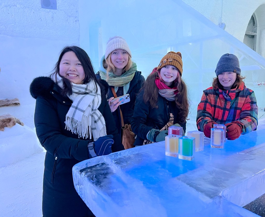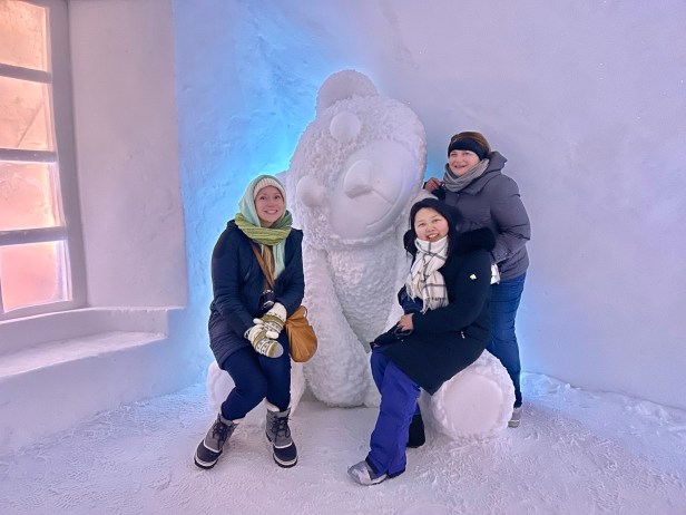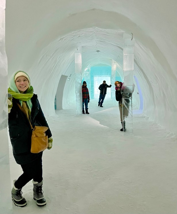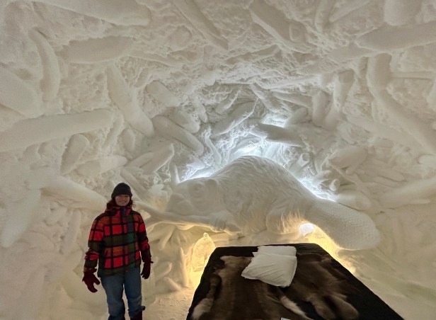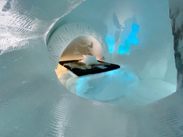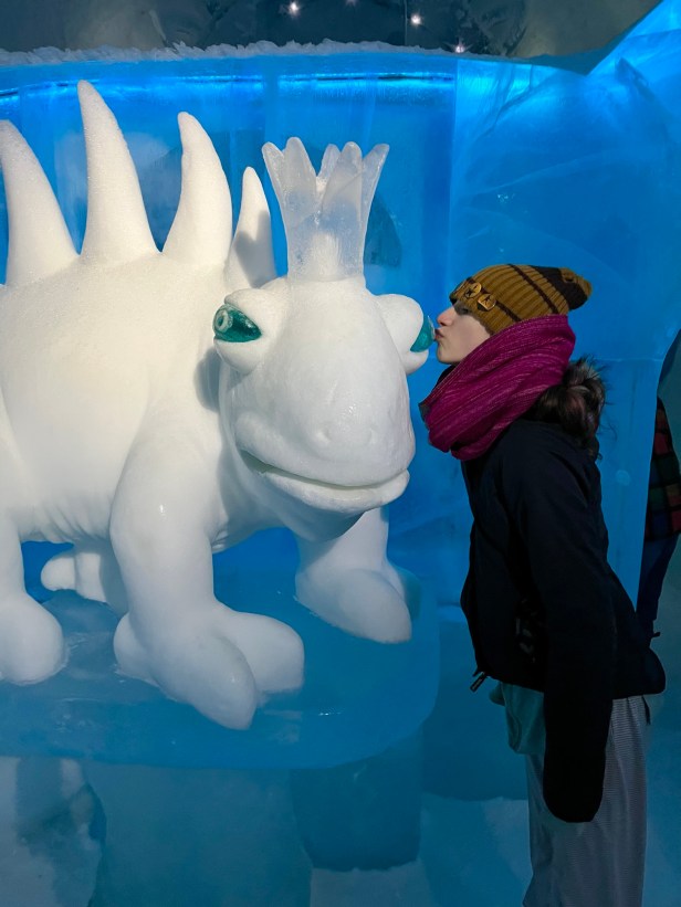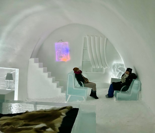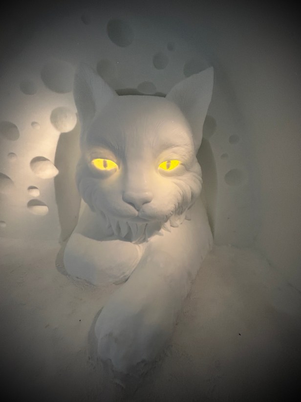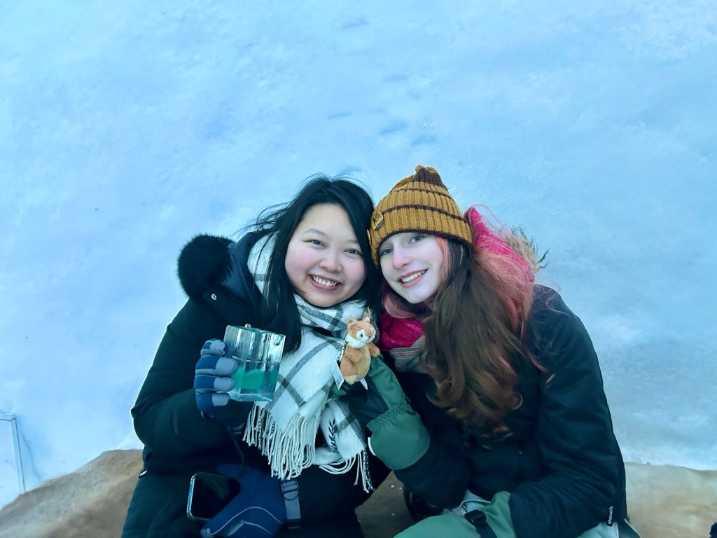 One of the coolest things to see in the Kiruna area is the ICEHOTEL, where they create an entire hotel and art gallery from ice. We did not sleep here, although you can – its very pricey. Spending our afternoon exploring all the rooms and then having fancy cocktails and drinks in a bar made entirely of ice was so incredible.