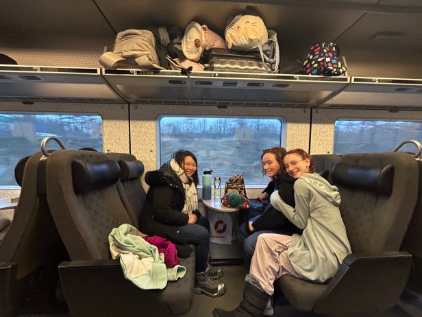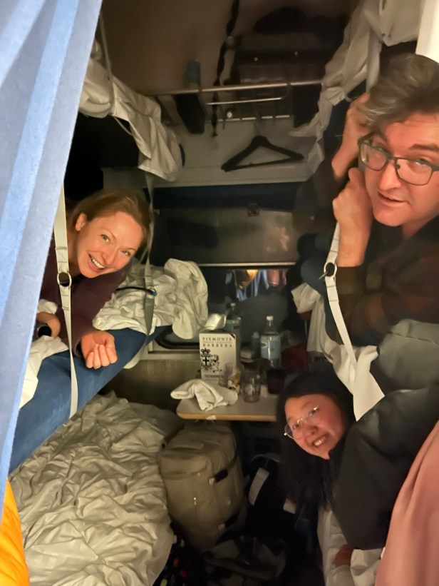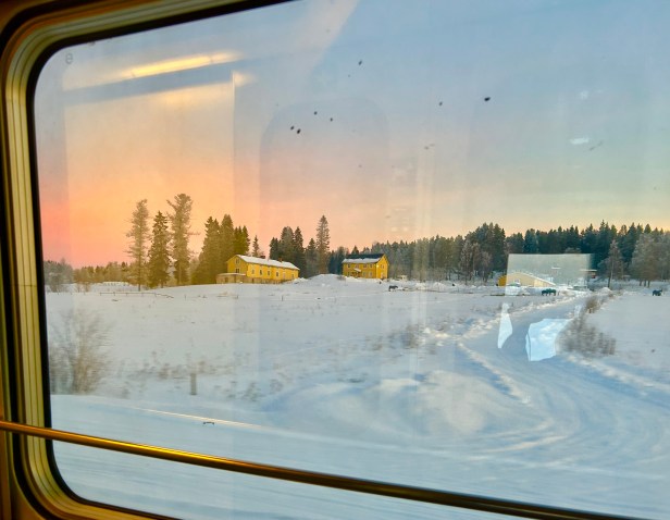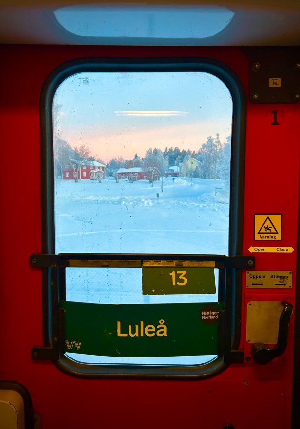 What a ride – intended as a 21 hour trip on a sleeper train with bunk cabins, delays led to it taking much longer, an extra 6+ hours due to switching issues. Without delays, the train ride would be really nice, but the many hours at the Boden station, without any information on when or whether we would be moving again, and not many food options, was super frustrating. Rudy and Penny got onto a replacement bus (only 2 seats available) which then broke down! So needless to say, the travel to Kiruna was exhausting. If I went again, I’d fly to Kiruna, where you can take a dog sled to your rental, which sounds incredible, and take the train home.