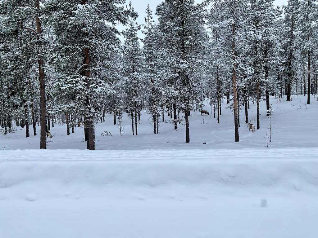 We took a drive to Challenger Park, where we followed some trails to a campsite and a frozen lake. We were on the lookout for moose, which we didn’t see, but we did see reindeer!