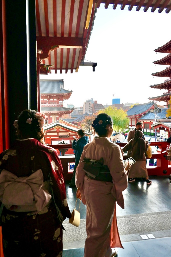 Senso-ji is the oldest temple in Tokyo, and is the temple of Avalokitesvara Bodhisattva (Sho Kanzeon Bosatsu). The story of the temple’s inception goes like this: on a morning in 628, brothers Takenari and Hinokuma Hamanari were fishing in the Sumida River. Bringing in their net, they were surprised that it held a buddhist statue – Avalokitesvara Bodhisattva (Sho Kanzeon Bosatsu). The head of the village then devoted himself to Buddhism and remade his house into a temple. Then, in 645, a Buddhist priest named Shokai came to this region and built a hall for the statue.