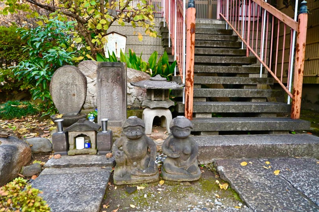 Sôgen-ji Temple was founded in 1588 and rebuilt in this location in 1657, close to the Sumida River, in an area that was prone to flooding. Legend has it that in the early 1800s, Kihashi Kappaya , a merchant, used his fortune to have a drainage system, dykes and bridges built to protect the area from flooding. All this with the help of the kappa (河童), a famous creature in Japanese mythology- amphibious, with a beak, feet and skin. The mythical kappa lives in fresh water and is reputed to be very polite but also very dangerous. From this legend came the temple’s nickname ” Kappa-dera”, the temple of the kappas.