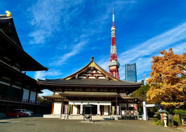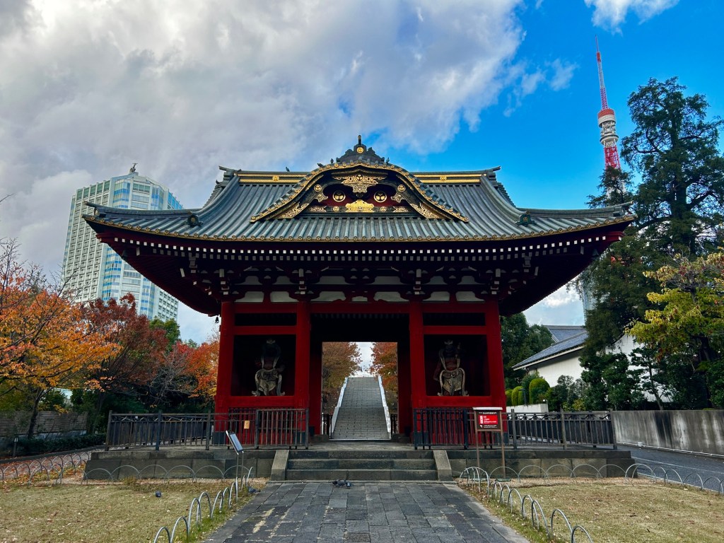 The Zojoji Temple (増上寺, Zōjōji) stands next to Tokyo Tower. Most of the current buildings are recent reconstructions except for the main gate, the Sangedatsumon, which dates from 1622.