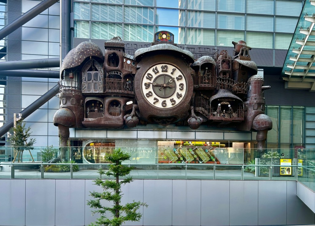 The Hayao Miyazaki-designed Ni-Tele Really Big Clock (Nittere Ōdokei) automaton clock outside the Nippon Television Tower. It performs a mechanical show four to five times a day.