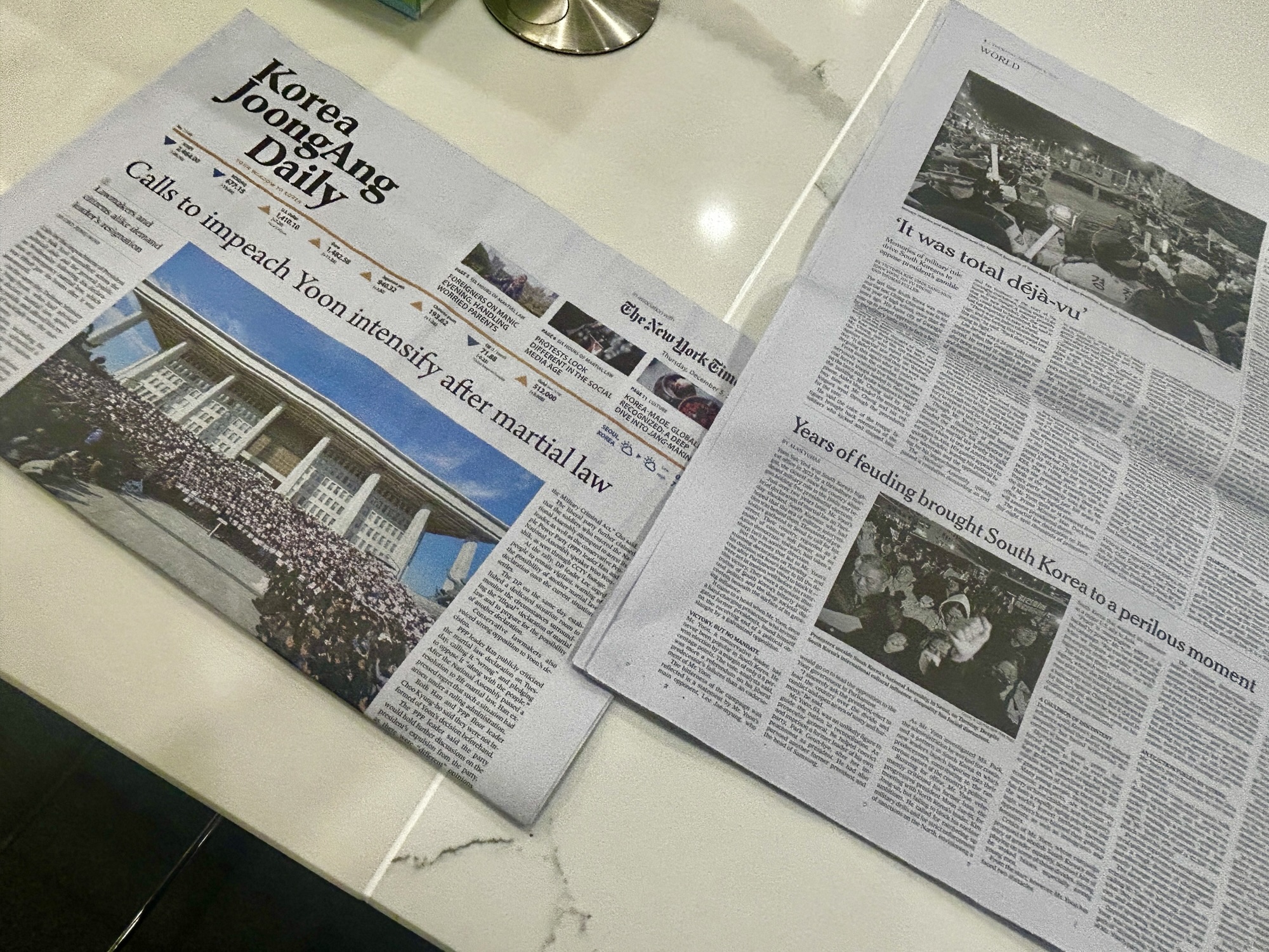 The night before I was traveling to South Korea, then-President Yoon Suk Yeol declared martial law in South Korea during a televised address, citing rising unrest and an alleged threat to national security. Troops were deployed, Yoon ordered the detention of opposition lawmakers, and state institutions such as the National Assembly were placed under military command. Press freedoms were also curtailed, but journalists continued reporting, despite restrictions. The announcement and actions prompted widespread demonstrations and within six hours politicians voted against the decree, surrounded by protesters and police. Yoon was forced to withdraw the order and, six days later, the Supreme Court declared the brief martial law unconstitutional. After that, the president was impeached and removed from office.