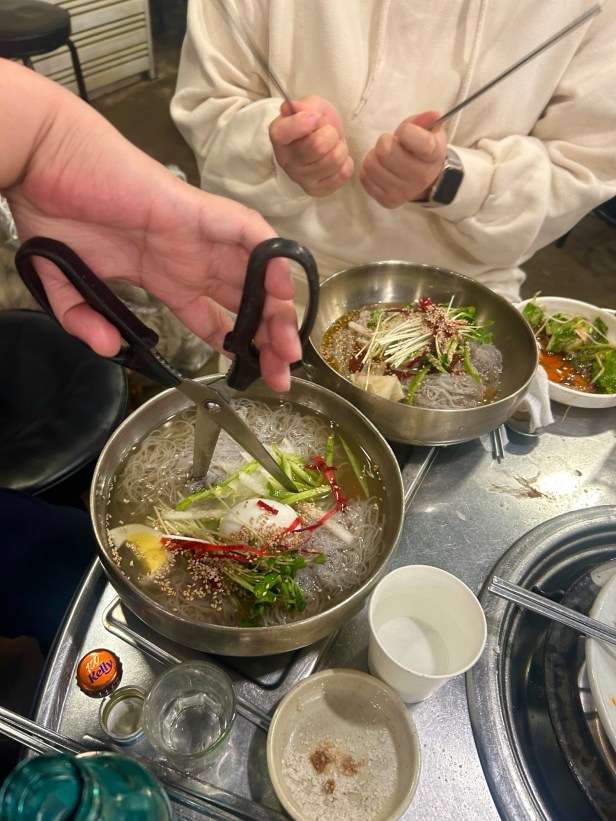 - Kalguksu – a noodle soup where you need scissors at the table to cut the long noodles