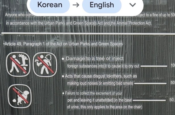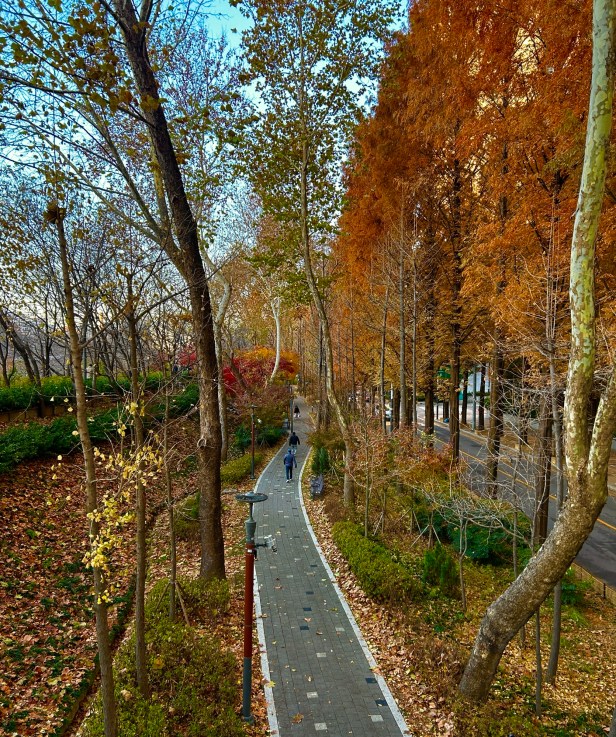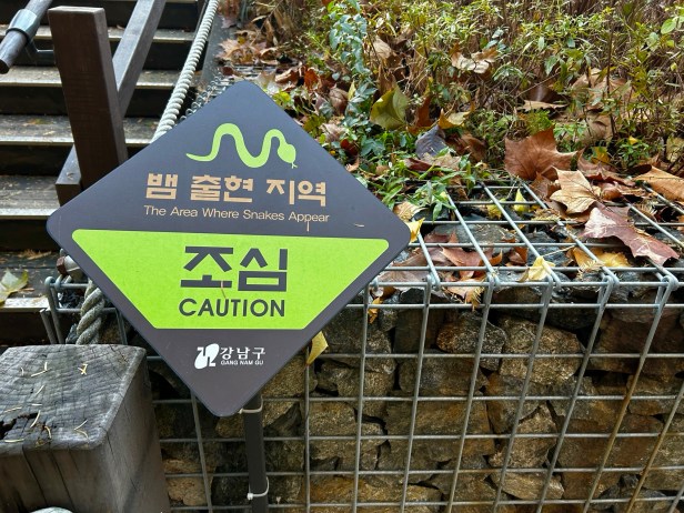 Based in Gangnam, my hotel was close to the Yangjaecheon Stream, which was a wonderful running route. It was very cold, but the paths were beautiful. I didn’t see any snakes, despite the sign. I also found my translation of some of the rules in the park to be pretty funny.