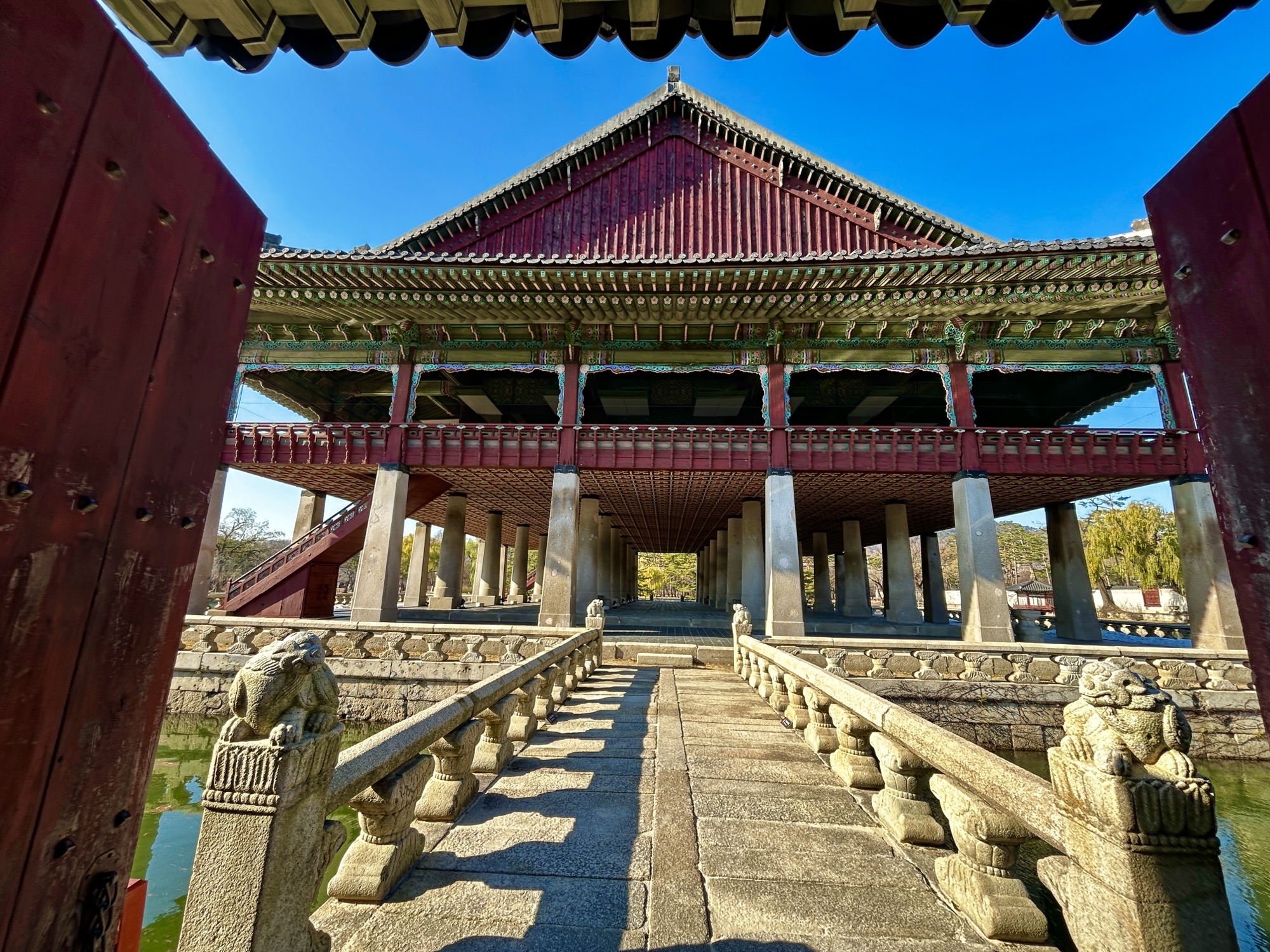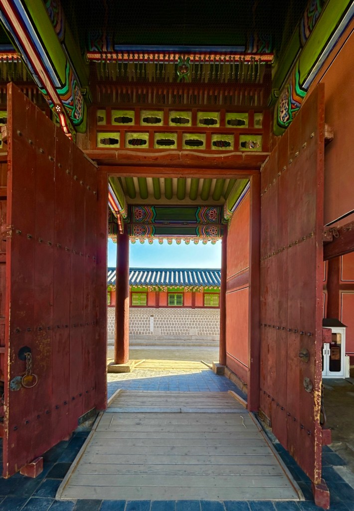 The Gyeongbokgung Palace is a palace of the Joseon dynasty, established in 1395 The name “Gyeongbok” means that “the new dynasty shall have good fortunes and prosper.” Gyeongbokgung Palace was destroyed during the Japanese invasion in 1592, not restored until 1867. In 1910, a treaty between Korea and Japan led to the systematic destruction of the palace, in order to host the Joseon Industrial Exhibition in 1915. Another palace restoration project began in the 1990s, and areas around Heungnyemun Gate, the royal living quarters, Geoncheonggung Palace, Taewonjeon Hall, and Gwanghwamun Gate were restored again.