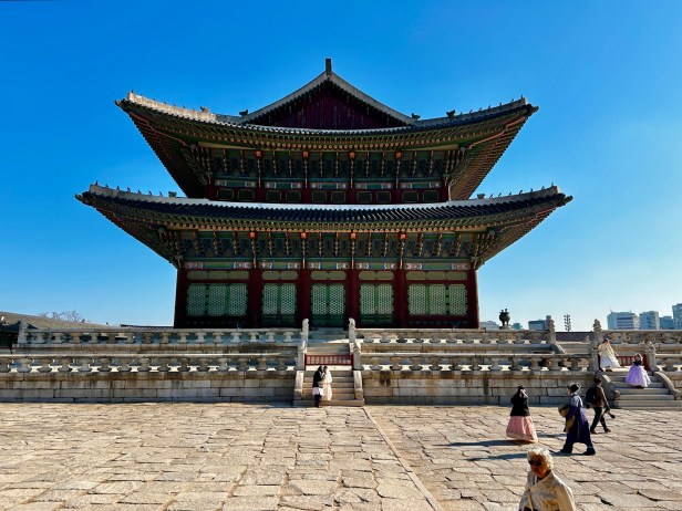 Something really fun about visiting the palace is that visitors are encouraged to wear Hanbok, the traditional clothing of Korea, by giving free admission to the palace as well as the other four Seoul palaces, Changdeokgung, Deoksugung, Changgyeonggung, and Gyeonghuigung if you do so. There are many places to rent the clothing, and I saw so many people dressed up in Hanbok. It was, however, incredibly cold outside, so I chose to stick to my regular clothing. But its on my to do list for the next time I’m there.