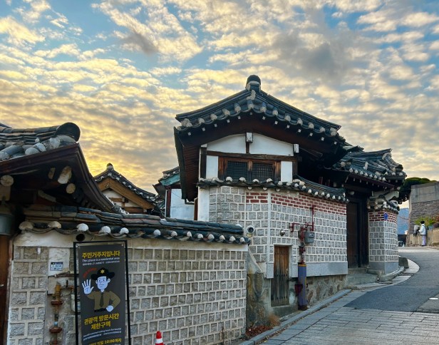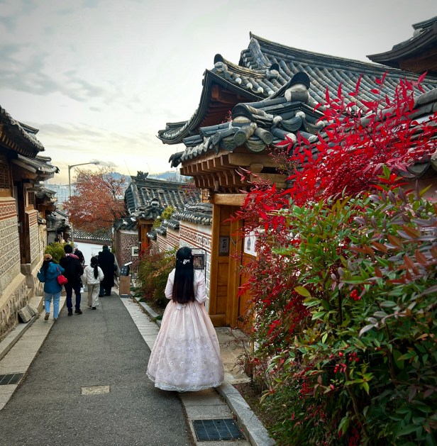 Nearby Gyeongbokgung Palace, this neighborhood is home to hundreds of traditional houses, called hanok, and people, locals and tourists, come to see the area and take photos. I saw a lot of visitors wearing Hanbok here, too.
